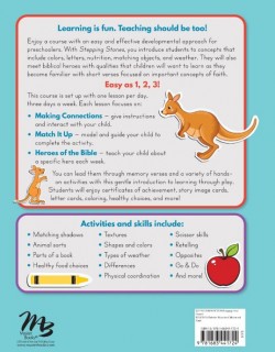 - Enjoy a course with an easy and effective developmental approach for preschoolers. With Stepping Stones, you introduce students to concepts that include colors, letters, nutrition, matching objects, and weather. They will also meet biblical heroes with qualities that children will want to learn as they become familiar with short verses focused on important concepts of faith.
